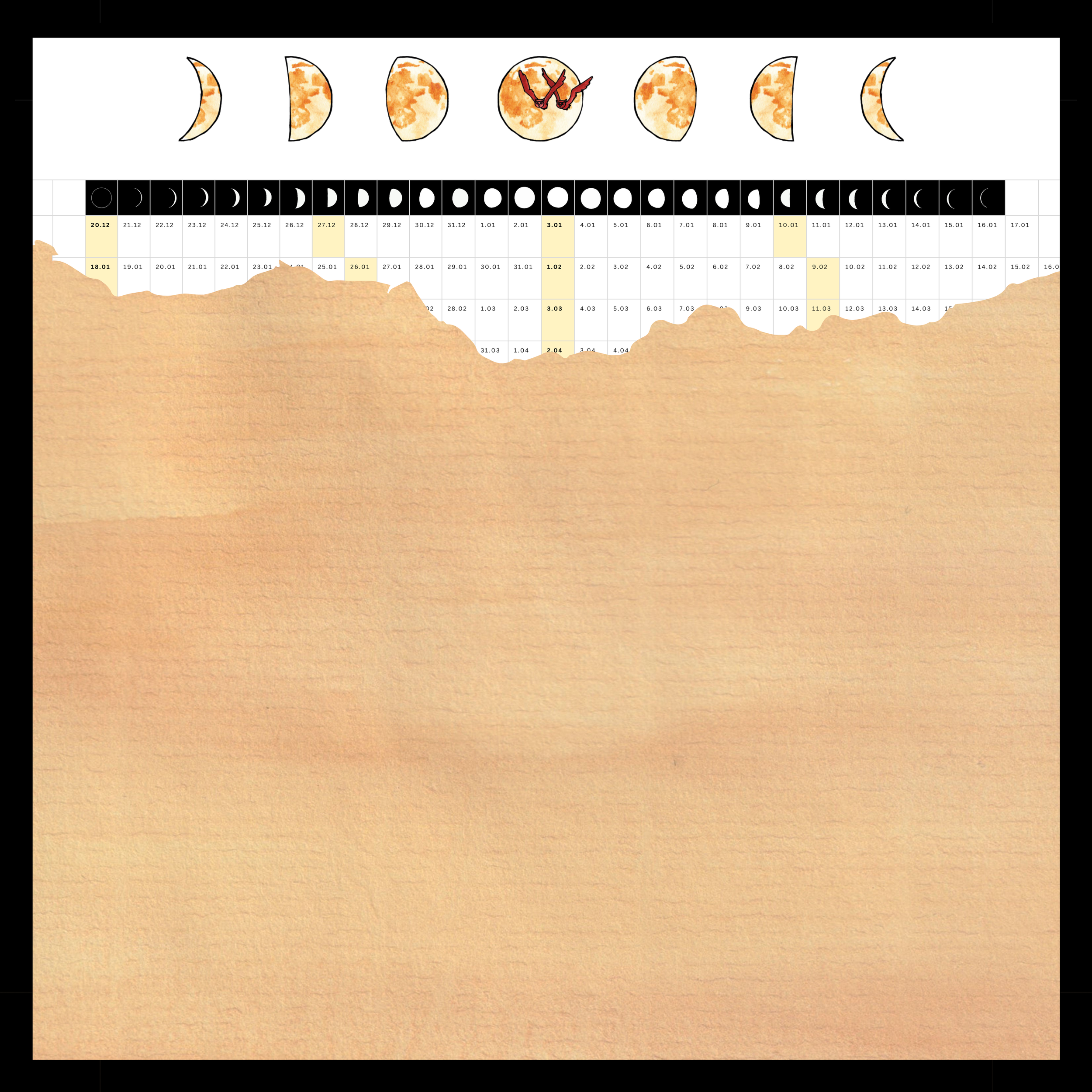 Nieuwe maan. Wassende maan. Volle maan. Afnemende maan.